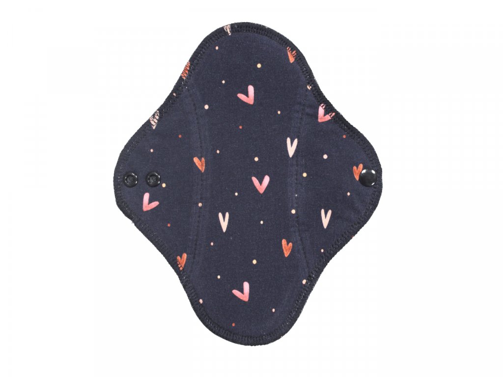 BIO Denní vložka (Bambusové froté s PUL) - Džínová srdíčka (biobavlněný úplet s GOTS)