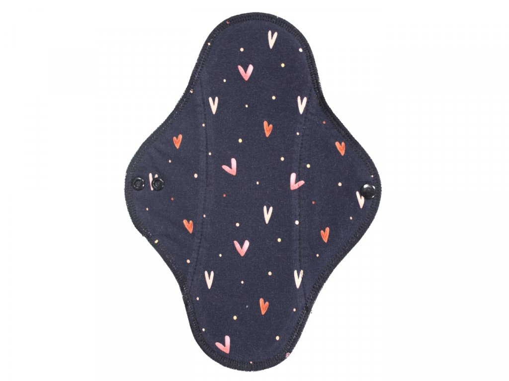 BIO Noční vložka (Bambusové froté s PUL) - Džínová srdíčka (biobavlněný úplet s GOTS)