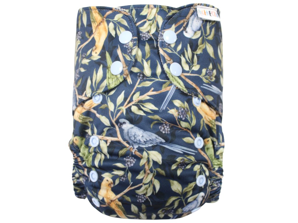 - Vnější část: PUL - 100% polyester z recyklátu laminovaný polyuretanem (vyroben v EU)