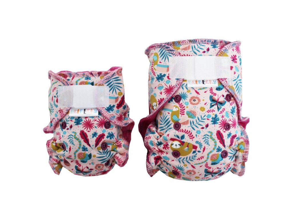 Každou velikost lze snadno regulovat ve výšce sedu pomocí patentek v přední části pleny a obvod kolem bříška si přizpůsobíte pomocí suchého zipu nebo také patentkami (záleží na tom jaké zapínaní jste si při nákupu vybrali).