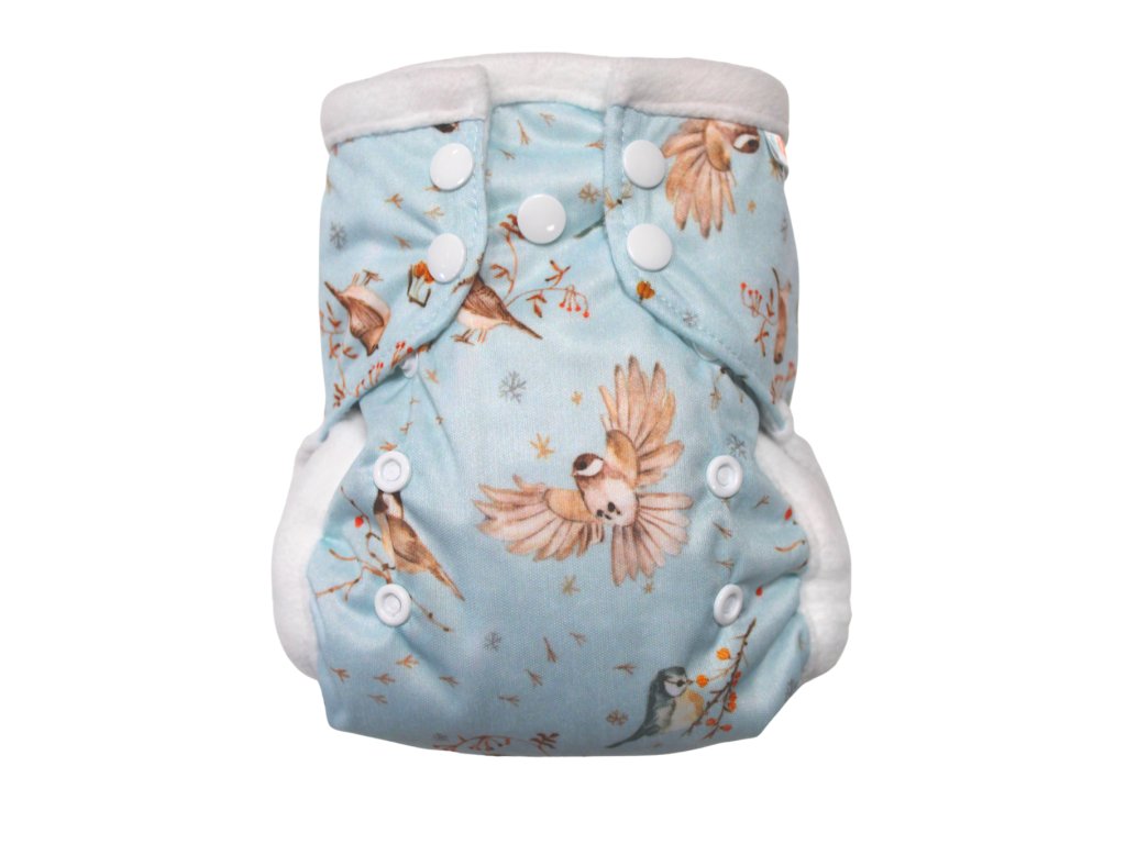 - S křidélky nebo lidově s "dvojitými gumičkami" má rozšířnou část mezi nožičkami a těsněji je obepíná. Skvěle se hodí u miminek s řidší stolicí anebo hubenými nožkami