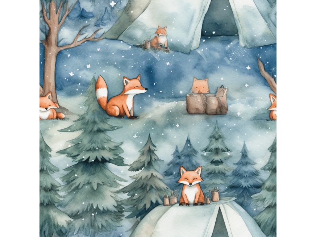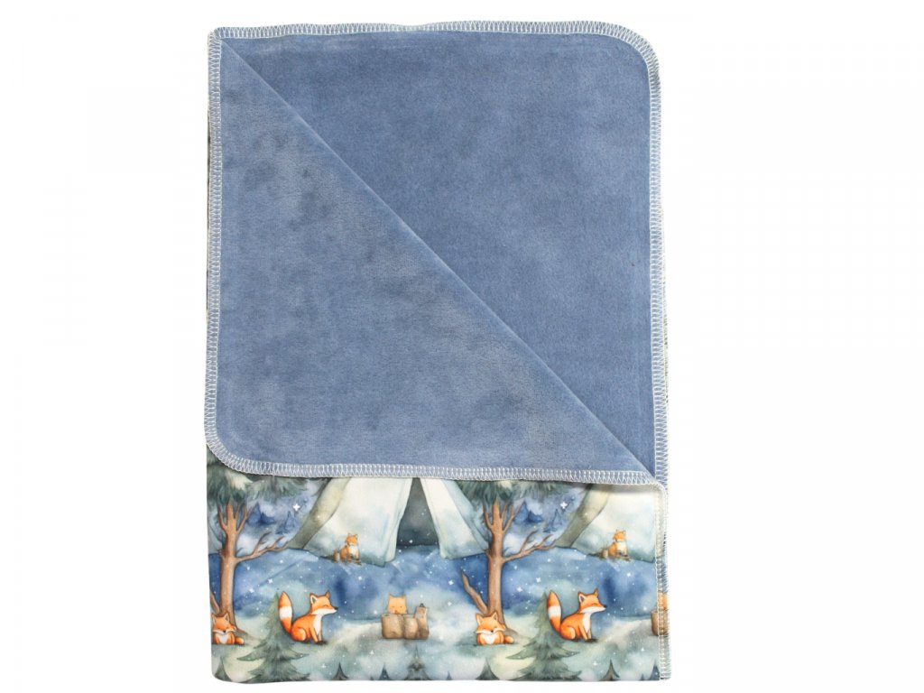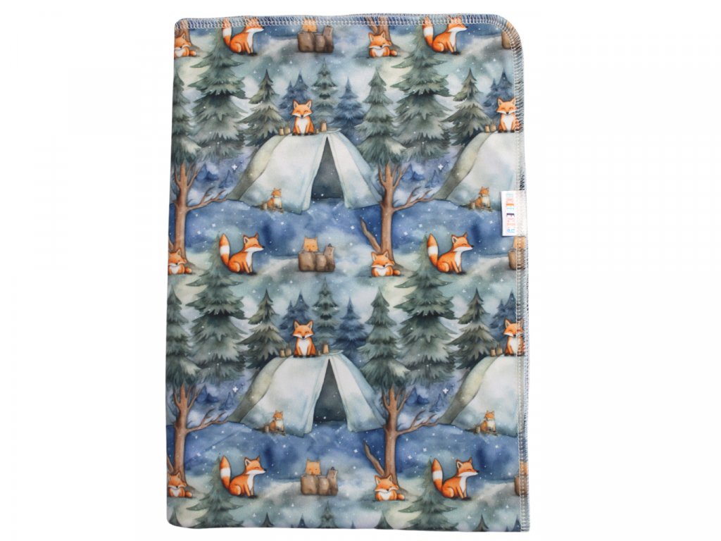 Přebalovací podložka (PUL) - Liška ve stanojeskyni, modro-šedý velur